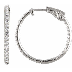 14K Gold 1 CTW Diamond Inside-Outside 26.5 mm Hoop Earrings